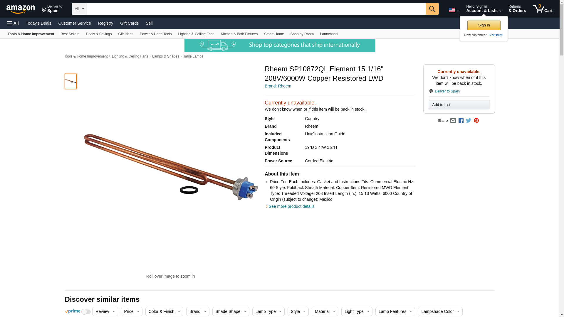 Rheem SP10872QL Element 15 1/16" 208V/6000W Copper Resistored LWDRheem SP10872QL Element 15 1/16" 208V/6000W Copper Resistored LWD Features:#149; Preferred Parts energy efficient resistor copper heating elements help fight lime build up and the resistor feature helps prolong the tank life of the water heater#149; Screwin Element#149; Includes gasket#149; Low Watt Density (LWD)