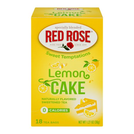 <ul> <li>Red Rose Sweetened Tea Lemon Cake.</li> <li>Specially blended.</li> <li>Fine teas since 1890.</li> <li>Sweet temptations.</li> <li>Naturally flavored.</li> <li>0 Calories.</li> <li>Tea bags Net Wt 1.27 oz (36 g).</li> <li>Gluten Free</li> </ul>