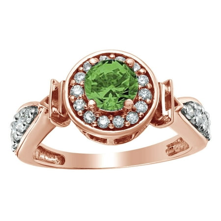 <ul> <li>Metal Type : 14K Rose Gold GUARANTEED, Authenticated with a 14K Stamp</li> <li>Gem Type : White Natural Diamond (Not Treated) & Green Natural Diamond (Color Enhanced)</li> <li>Stone Creation Method : Natural</li> <li>Stone Shape : Round Shape</li> <li>Stone Setting Type : prongs & Stone Carat Weight : 1</li> </ul>