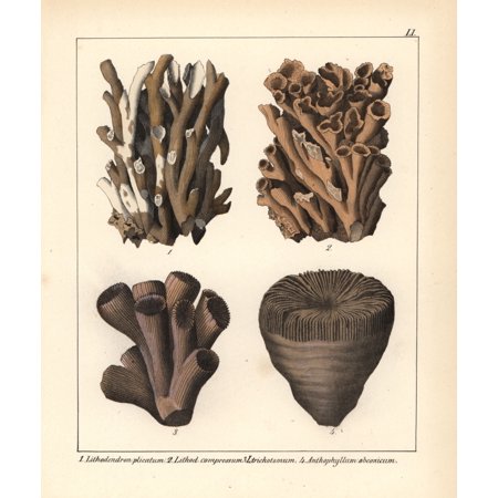 ?_ Florilegius / Mary Evans Stretched Canvas Art - Stony Coral Fossils: Lithodendron And Anthophyllum Species - Large 24 x 36 inch Wall Art Decor Size.