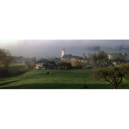 Panoramic Images Stretched Canvas Art - Village at the lakeside, Wolfgangsee, Salzkammergut, Austria - Large 30 x 12 inch Wall Art Decor Size.