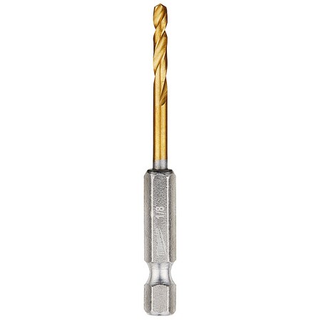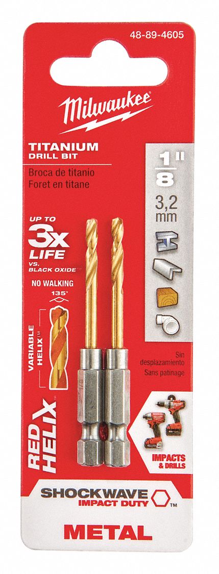 Milwaukee Electric Tool 48-89-4605 Impact Drill Bit, 1/8" Diameter x 2.62" L, 29/32" 35 Degree Helix Flute, 1/4" Hex Shank, 135 Degree