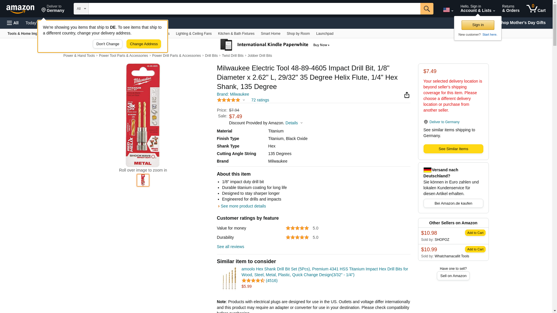 | ToolUp.com | MILWAUKEE 48-89-4605 | 1 | -2 | 1 | 1 @ $5.97 |