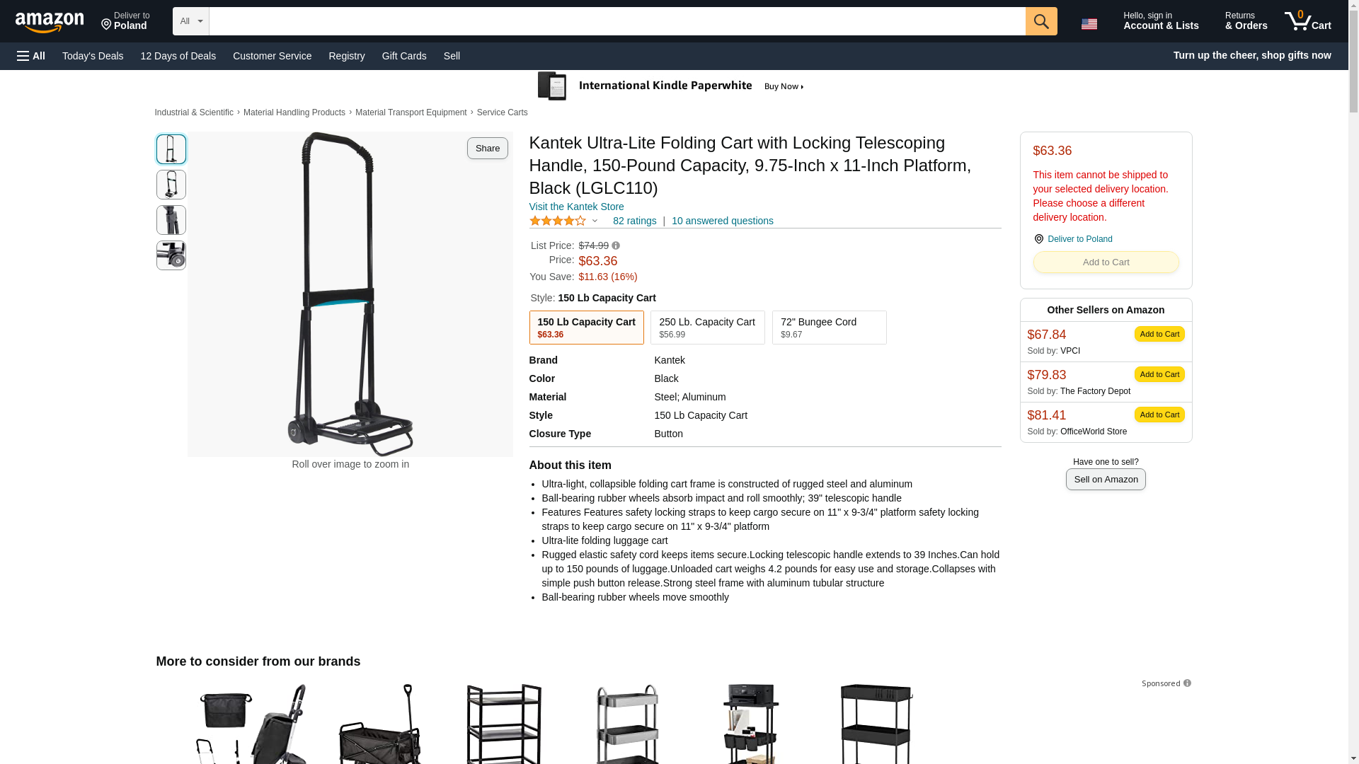Kantek Ultra-Lite Folding Cart ,CART,LUGGAGE,150LB,BK