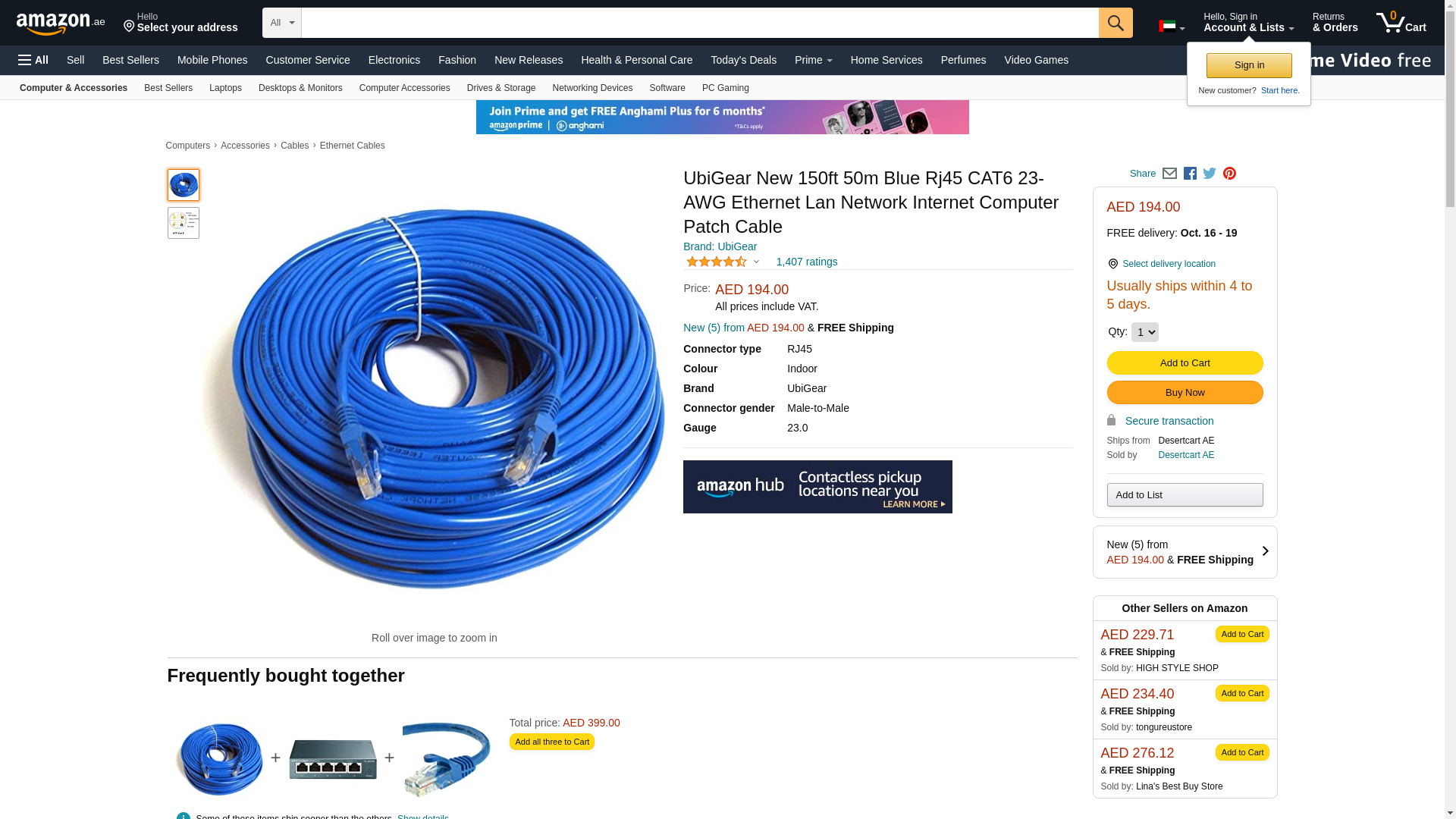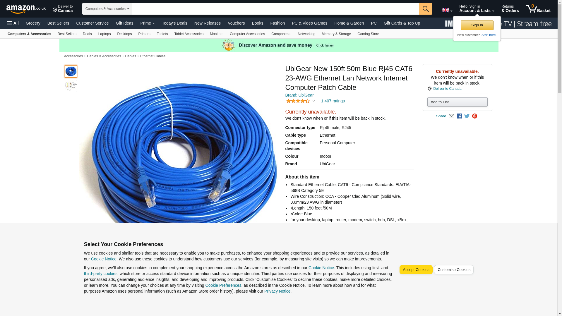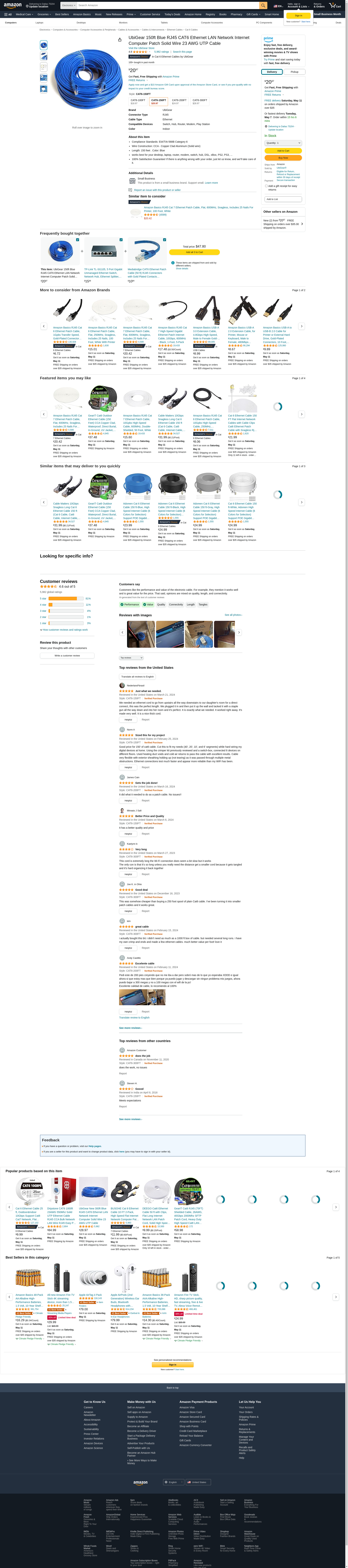 UbiGear New 150ft 50m Blue 150' Ft RJ45 CAT6 Ethernet LAN Network Internet Computer Patch Solid Wire 23 AWG UTP Cable: Maxedbuy.com