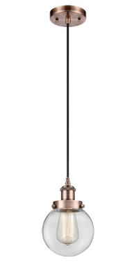 INNOVATIONS LIGHTING 916-1P-AC-G202-6 BALLSTON BEACON 1 LIGHT 6 INCH CLEAR GLASS MINI PENDANT, ANTIQUE COPPER,...