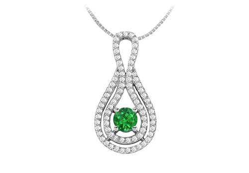 Fine Jewelry Vault UBPD3034W14DE Diamond and Natural Emerald Pendant in 14K White Gold 1.25 Carat TGW