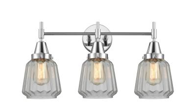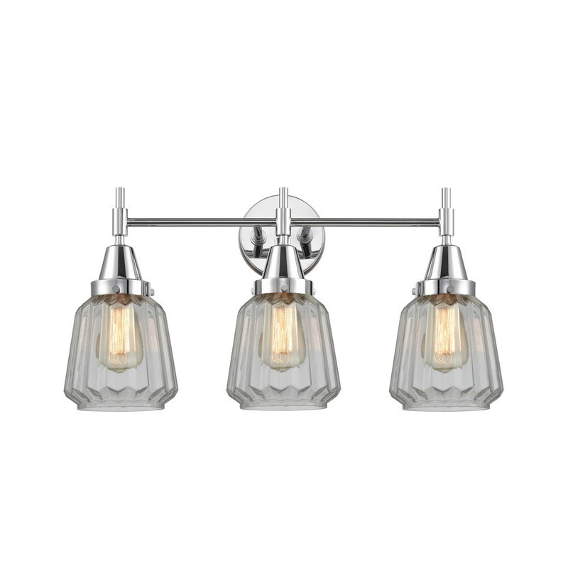 INNOVATIONS LIGHTING 447-3W-PC-G142 CADEN 3 LIGHT 24 1/4 INCH CLEAR GLASS VANITY LIGHT, POLISHED CHROME, INCANDESCENT