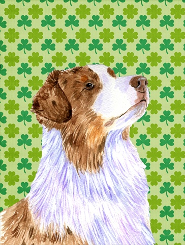 Carolines Treasures LH9183CHF Australian Shepherd St. Patricks Day Shamrock Portrait Flag Canvas House Size