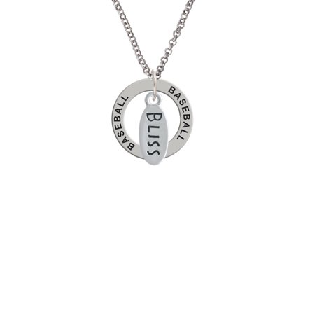 Silver Tone Bliss Oval Baseball Affirmation Ring Necklace. Silver Tone Charm. Charm size is approx. 0.76 x 0.32 x 0.06 inches (HxWxD) including loop. Silver tone 2mm Belcher Chain Necklace is approx. 23 Inches with a Lobster Claw Clasp. Affirmation Ring is approx. 0.86 x 0.86 x 0.05 (HxWxD). This inspirational piece of jewelry is very meaningful. Its circular shape is symbolic for endless belief in the message that is imprinted around the ring. These are motivational or sentimental messages to the wearer. Makes a great team gift! PLEASE NOTE: Our products are lead safe, but are not intended for children 14 years and younger.