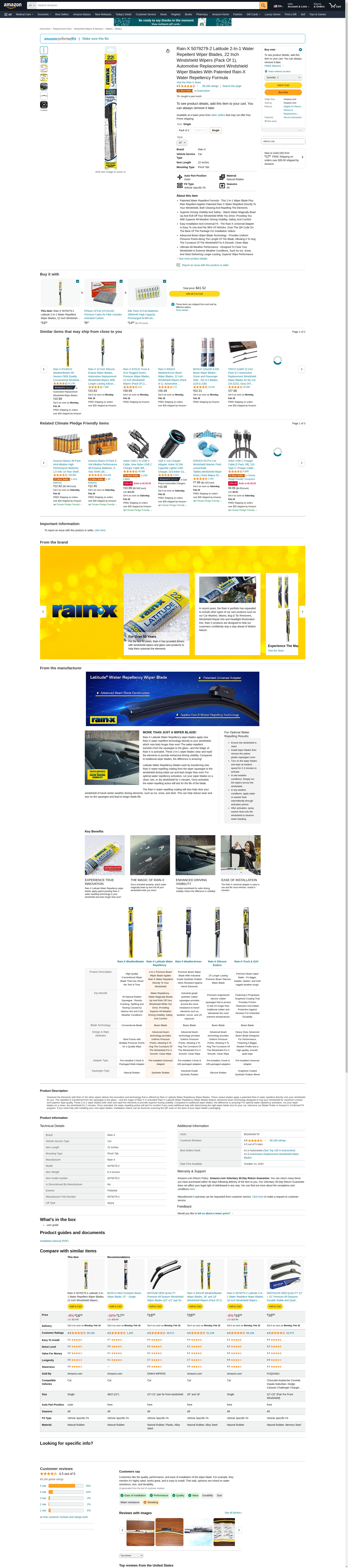 | Feature | Water repelling coating\xc2\xa0- RainX water repelling formula is applied to the windshield by the wiper blades and lasts for months |