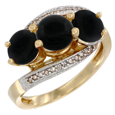 14K Yellow Gold Natural Black Onyx 3 stone Ring Round 6mm Diamond Accent, sizes 5 - 10