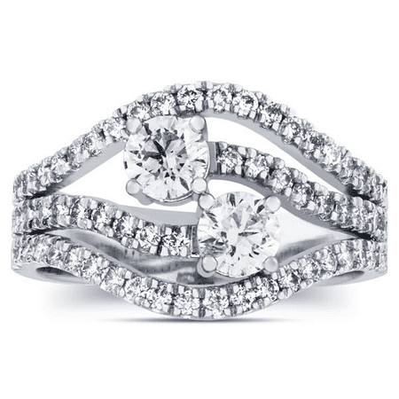 1 1/2 ct Two Stone Diamond Multirow Engagement Anniversary Ring White Gold