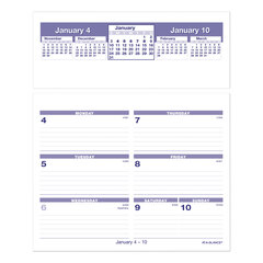 Weekly refill pages are designed for use in At-A-Glance Flip-A-Week Desk Calendar bases SW706, SW700X and SW706X. Get a handle on your schedule with the unique flip-and-drop pages of this dated refill. Set of pages ranges 12 months from January to December. Each weekly spread on two pages includes ruled daily entries, Monday-through-Sunday scheduling, count of days/days remaining, and two past, one current and two future months reference. The current reference month is boxed and enlarged for easy identification. Calendar pages are printed in blue ink except for the red ink to denote federal holidays.