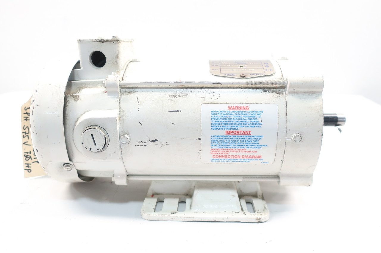<p><ul><li>NEMA C-face with removable base</li><li>Tach adaptable</li><li>Class F insulation</li><li>Double sealed ball bearings</li><li>20:1 constant torque speed range</li><li>UL and CSA recognized</li><li>No dual mounting base holes on 1/4 - 1/2 hp</li><li>Applications: Conveyors, Mixers, packaging machinery and other applications requiring variable speed and constant torque Washdown Duty</li><li>Moisture sealant on bolt heads between frame and endplates, neoprene gasketed conduit box</li><li>Double sealed ball bearings</li><li>Forsheda running contact v-ring slinger</li><li>Stainless steel shaft</li><li>Electrostatic epoxy paint coating</li><li>Class F insulation</li><li>20:1 constant torque speed range</li><li>Tach adaptable</li><li>Applications: Food processing conveyors and feeders exposed to high pressure wash down</li><li>1/4 to 1/2 hp motors are TENV, all others are TEFC</li></ul></p> ,<p><b>Specifications: </b><ul><li>Motor Family:-Permanent Magnet </li><li> Motor Type:-Brushed </li><li> Horsepower:-3/4 hp </li><li> DC Armature Voltage:-90 V </li><li> Base RPM:-1750 rpm </li><li> Enclosure Type:-TEFC (Totally Enclosed Fan Cooled) </li><li> NEMA / IEC Frame Size:-56C </li><li> Armature Full Load Current:-7.6 A </li><li> Overall Length (C-Dimension):-14.59 in </li><li> Insulation Class:-F </li><li> Standards Met:-NEMA </li><li> Drive End Bearing:-6203 </li><li> Weight:-38 lbs </li><li> Opposite Drive End Bearing:-6203 </li><li> Recommended Control:-Bcwd140 </li><li> Typical Application:-Food Processing Conveyors and Feeders Where The Motor is Exposed to High Pressure Wash Down </li><li> Wattage:-559.5 W </li></ul></p>