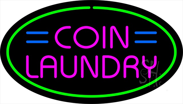 Sign Store N100-1840 Pink Coin Laundry Oval Green Border Neon Sign, 30 x 17 x 3 In.