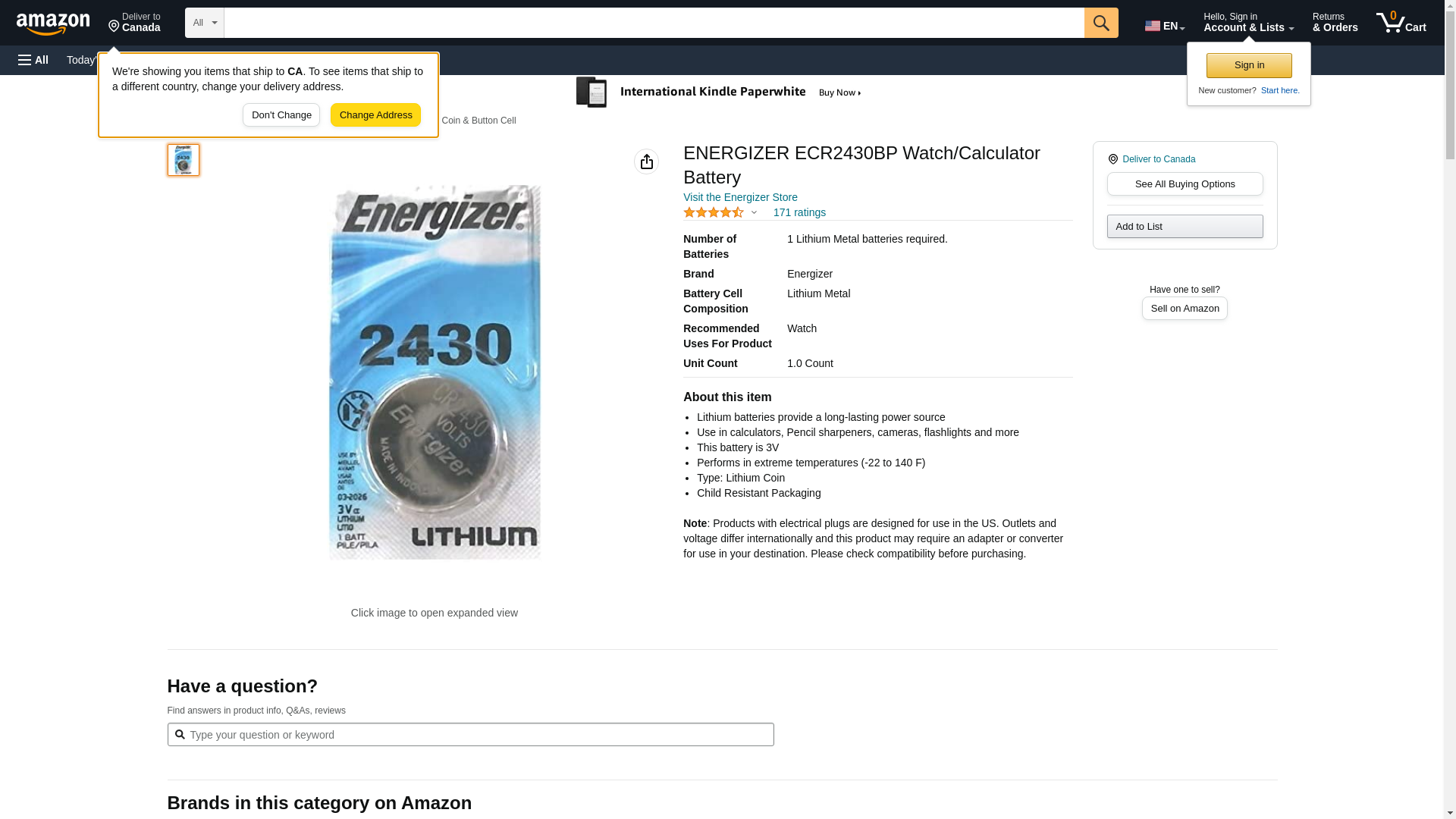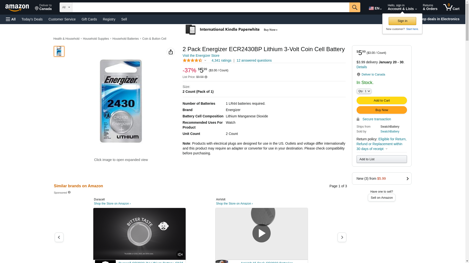 | Feature | Energizer Ecr2430bp Lithium Manganese Dioxide Coin Cell General Purpose Battery - 290 Mah - Lithium Manganese Dioxide - 3 V Dc - 1 Each |