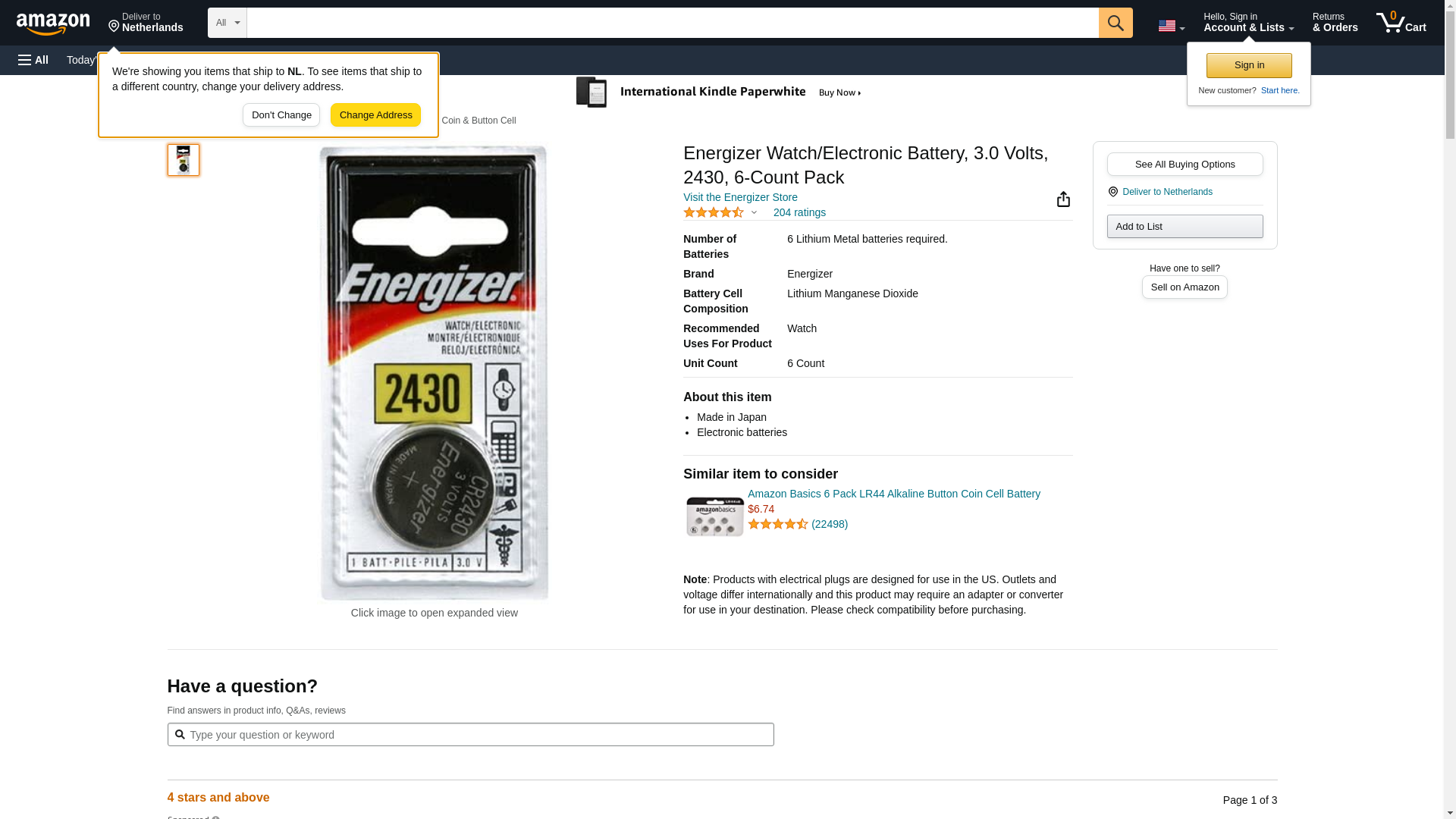 - Cell size: 2430; IEC: CR2430; Type: Lithium Coin; Volt: 3
