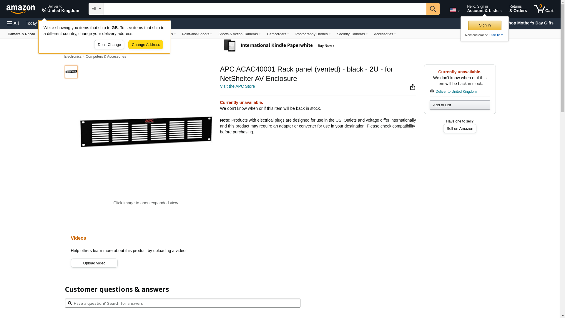 Apc Netshelter Av 2U Vent Panel - ACAC40001