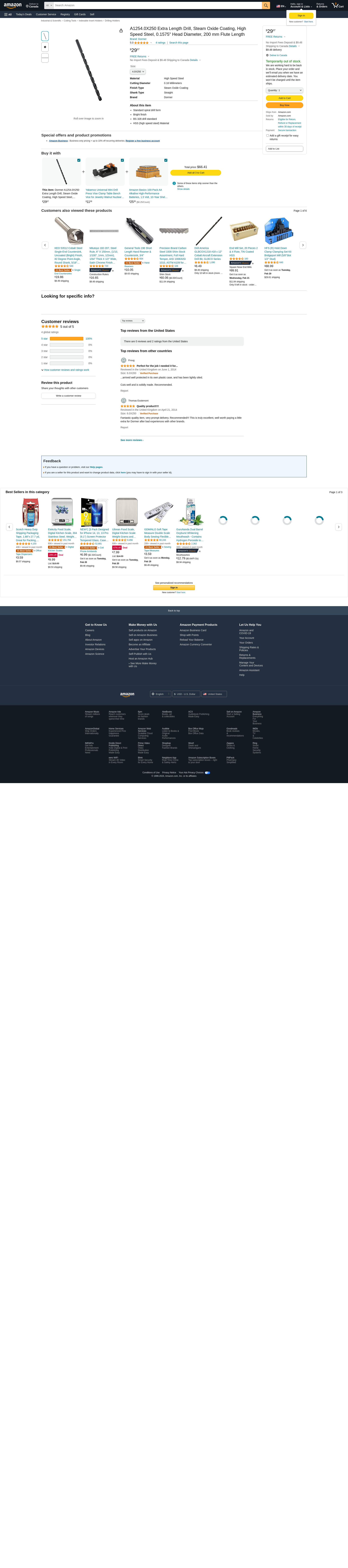 Dormer A1254.0X250 Extra Length Drill, Steam Oxide Coating, High Speed Steel, 0.1575" Head Diameter, 200 mm Flute Length