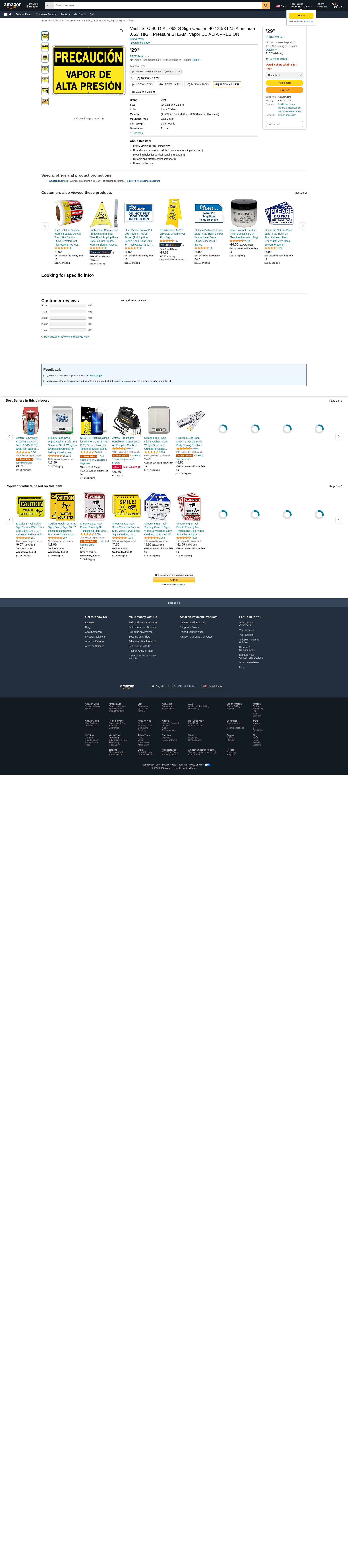 Vestil SI-C-40-D-AL-063-S Sign-Caution-40 18.5X12.5 Aluminum .063, HIGH Pressure STEAM, Vapor DE ALTA PRESIÓN