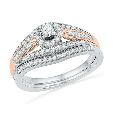 10kt White Two-tone Gold Womens Round Diamond Bridal Wedding Engagement Ring Band Set 1/2 Cttw. †Combined diamond weight of 1/2 carats total weight represents a range of 0.46 - 0.58 cts. t.w.