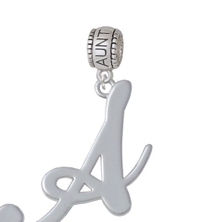 Silver Tone Large Gelato Script Initial - A - Aunt Charm Bead Hanger. Silver Tone Initial Charm is approx. 1 1/4" tall. Charm Hanger Bead is approx. 13x10x7 mm (HxWxD) Hole size 5.5 mm. Our Charm Beads are compatible with most Charm Bead Bracelets. Also makes a great charms pendant. Featured charms is an exclusive Delight & Co. design. We are a family owned company for over 35 years in the U.S.A. PLEASE NOTE: Our products are lead safe, but are not intended for children 14 years and younger.