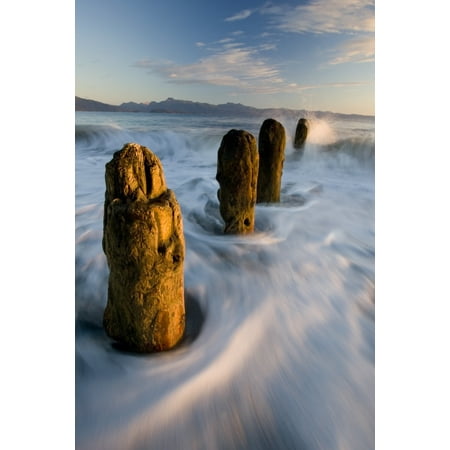 Surf Rushing Around Old Pilings Along Beach Homer Spit Kachemak Bay Alaska Summer Evening Blur Motion PosterPrint