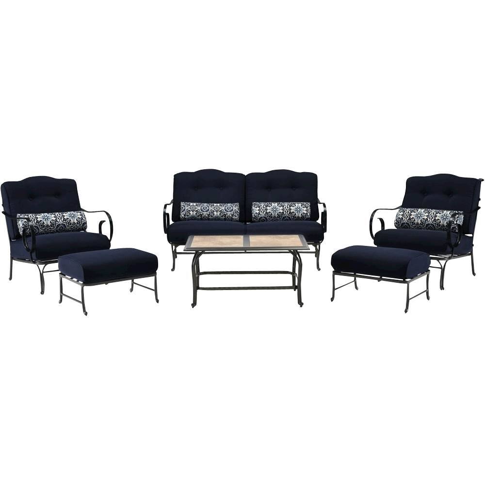 Oceana 6-Piece Patio Set in Navy Blue with a Tile-top Coffee Table