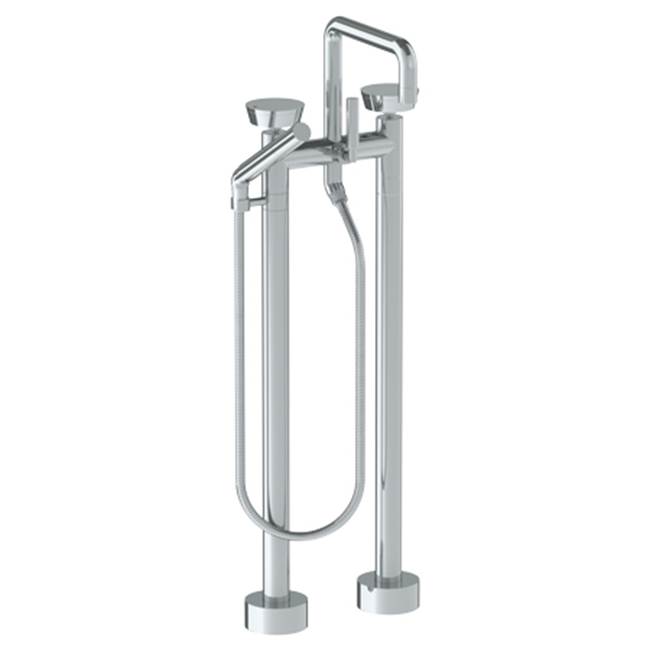 WATERMARK 36-8.26.3-BL1-WH ZEN 34 3/8 INCH TWO HOLES FLOOR MOUNT SQUARE TUB FILLER WITH SLIM HAND SHOWER, WHITE, SKY...