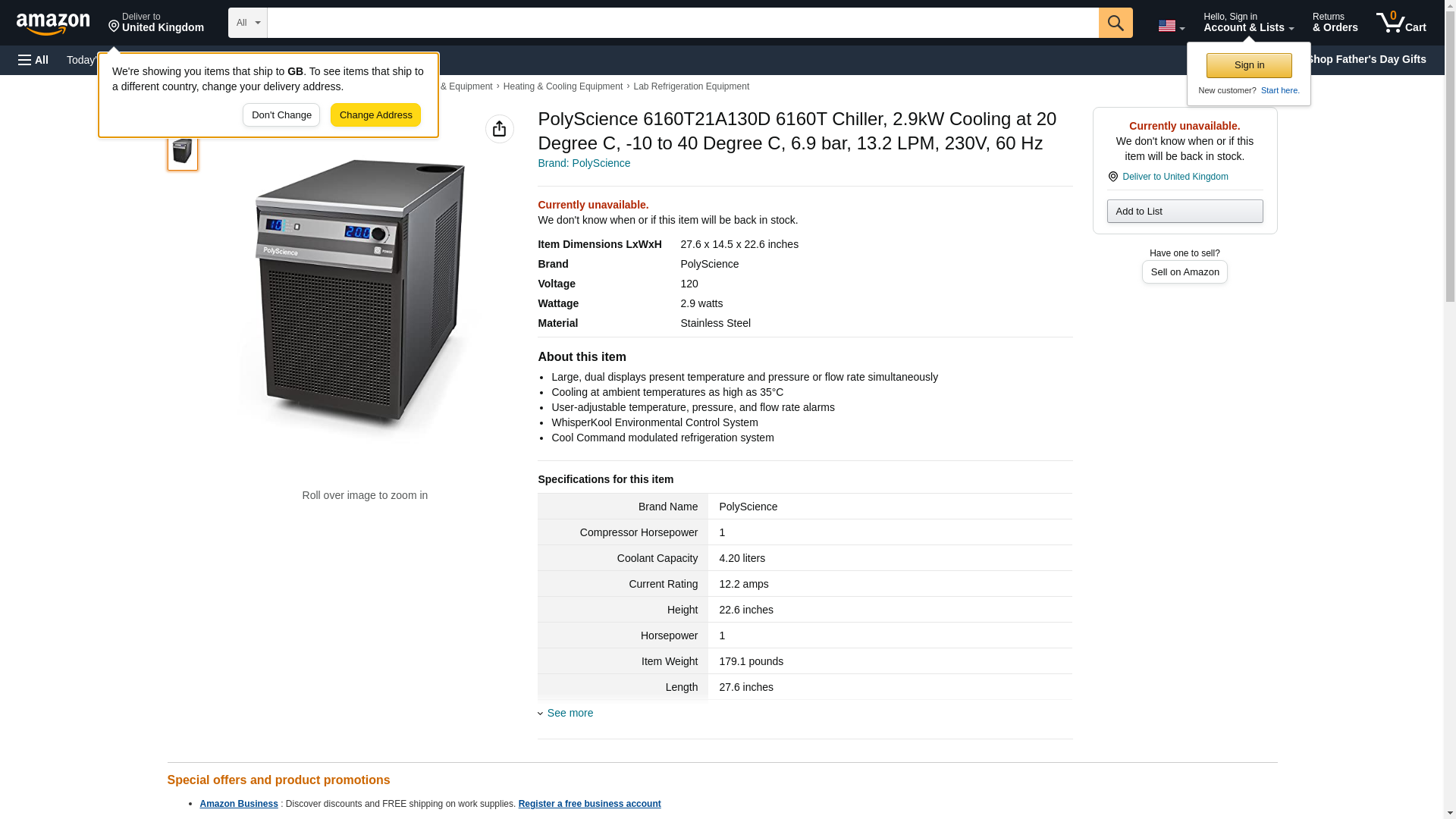 PolyScience 6160T21A130D 6160T Chiller, 2.9kW Cooling at 20 Degree C, -10 to 40 Degree C, 6.9 bar, 13.2 LPM, 230V, 60 Hz