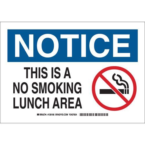 Brady 128166 NOTICE This Is A No Smoking Lunch Area Sign - Non-reflective Aluminum - Black/Blue/Red on White - 7 x 10