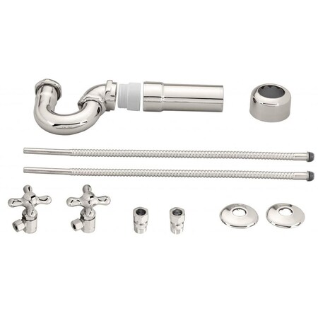This Westbrass Pedestal Lavatory Kit with universal 3/8 in. angle stops with cross handles, 3/8 in. x 20 in. corrugated annealed brass risers, and 1-1/2 in. x 1-1/2 or 1-1/4 in. LA P-Trap with high box flange, is perfect for dressing up an exposed or console style Kitchen or Bathroom sink. The angle stops fit both 1/2 in. IPS or 1/2 in. Copper Pipe (5/8 in. Nominal) and come with sure grip flanges to fit both sizes. Changing washers allows the P-Trap to fit both Kitchen and Bath sinks, and is the perfect finished compliment for PVC or ABS sink rough-ins.