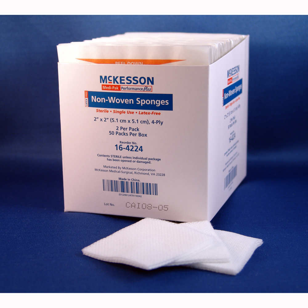 McKesson McKesson-16-4224-BX 2 x 2 in. Medi-Pak Sterile Non-Woven Sponges, White - Box of 100