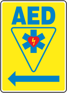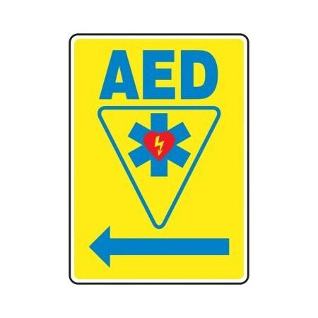 Accuform MFSD416XV, Adhesive Dura-Vinyl Sign: "AED Automated External Defibrillator" & Left Arrow, Pack of 15 pcs