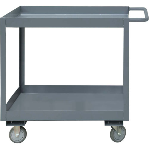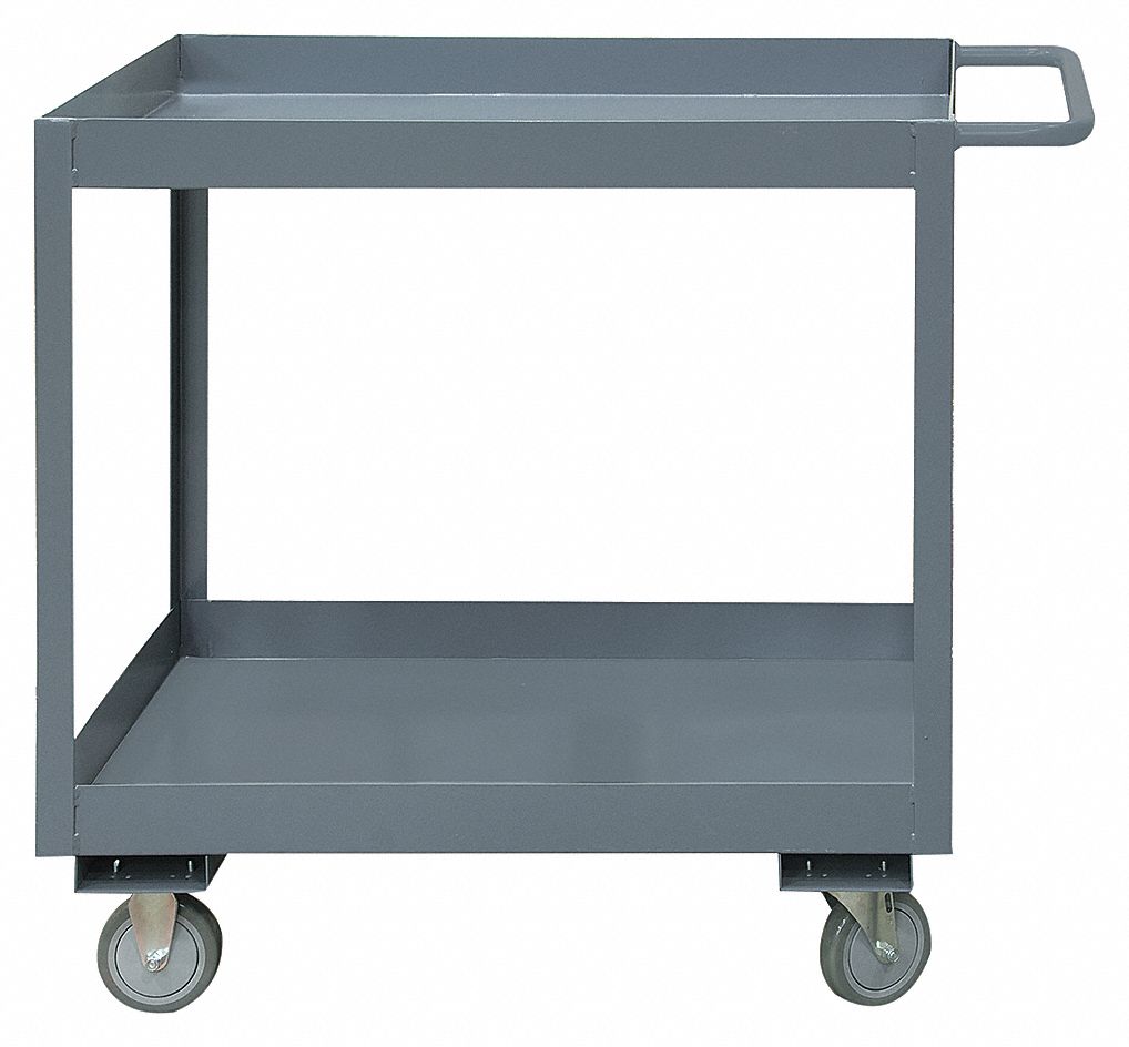Durham MFG RSC3-1830-2-95 Two-Shelf Heavy Duty Utility Cart with 3 Lips 18 x 30 x 37-5/8 This heavy duty cart or workstation is perfect for moving product boxes tools or any job that needs a heavy duty transportation vehicle. Features shelves with 3 lips that allow you to keep items in place without falling-out. Polyurethane long-wearing casters resists: abrasion non-marking and shock absorbing. This is the perfect cart for knitting areas manufacturing warehouses maintenance and machine shops. RSC3-1830-2-95