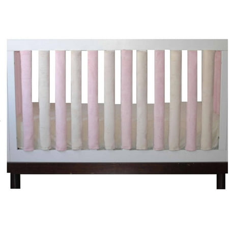 <p><br /><b>Doctor-approved, Safe Vertical Wonder Bumpers in Reversible Pink and Cream Minky, Choose Your Pack</b><b>:</b></p> <ul> <li>Protects baby's head and body</li> <li>Keeps limbs safely inside crib</li> <li>Provides optimum air flow and ensures no risk of suffocation or strangulation associated with horizontal crib bumpers</li> <li>Zip closure with no dangerous ties</li> <li>24" high</li> <li>Compress to accommodate shorter crib rails</li> <li>Stretch to fit up to rails 3" in circumference</li> <li>Zip together to cover wider rails or corners</li> <li>Easy to wash</li> <li>Do not wash more than 10 vertical baby bumpers at a time</li> <li>Do not iron</li> <li>Reversible color for creating different patterns</li> <li>Choose pack size: 2, 24 or 38</li> </ul>
