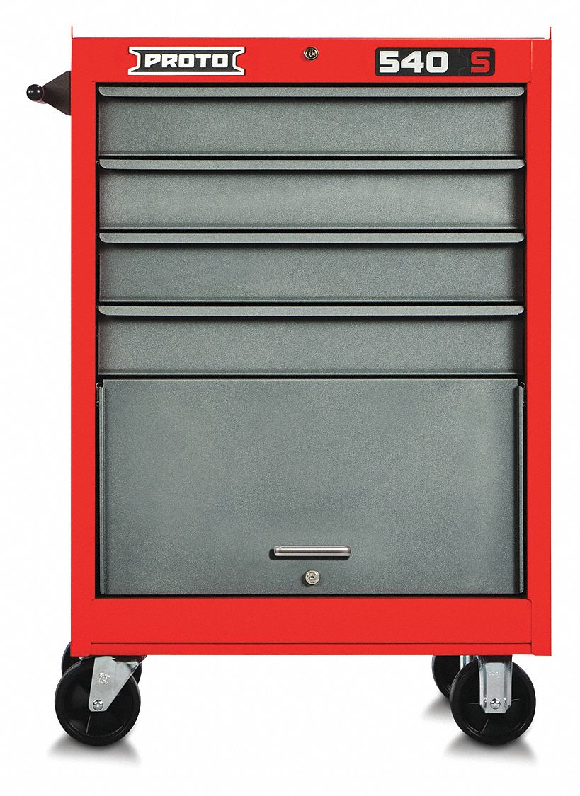 | Feature | <b>Price For:</b> Each <b>Storage Capacity</b>: 11, 159 cu. in. <b>Color</b>: Red <b>Features</b>: Fully Extending and Recessed Drawers, Adjustable Drawer Detents, Reinforced Top and Bottom Panels <b>Caster Type</b>: (2) Fixed with Lock, (2) Swivel <b>Drawer Capacity</b>: 200 lb. <b>Material</b>: steel <b>Depth</b>: 18" <b>Height</b>: 42" <b>Caster Size</b>: 5" x 2" <b>Gauge</b>: 18 <b>Handles</b>: Easy Grip Steel <b>Includes</b>: Drawer liners |