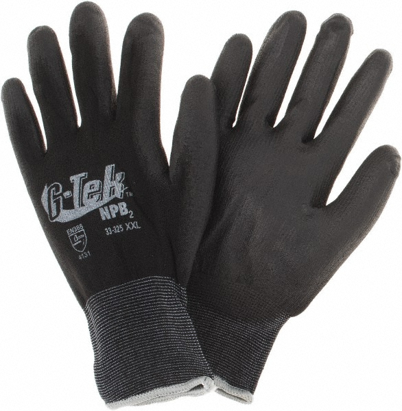 G-Tek 33-325/XXL NPB2 Seamless Knit Nylon Gloves with Urethane Coated Palm and Fingers, Black, XX-Large, 1-Dozen
