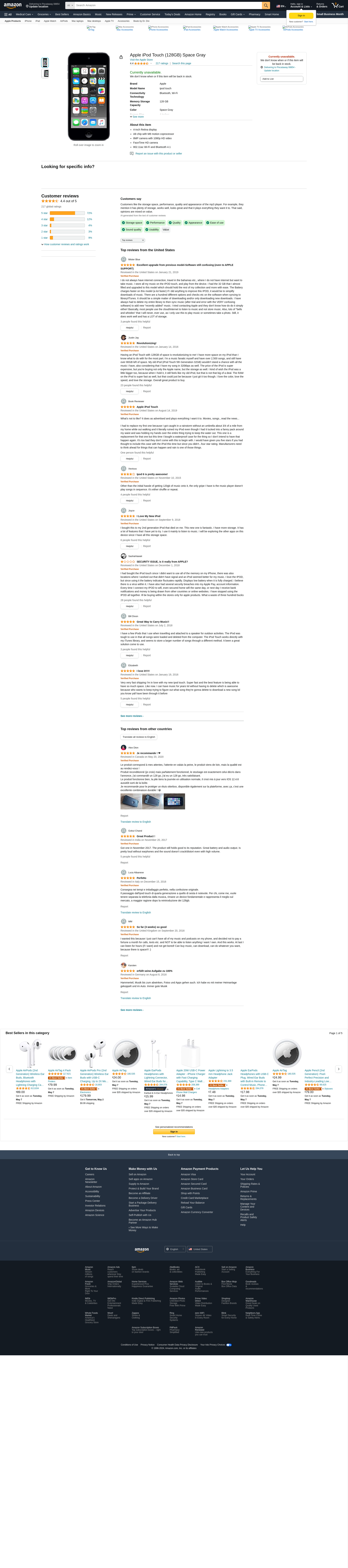 | Feature | In the Box - iPod Touch, Apple EarPods, Lightning to USB cable, QuickStart guide |