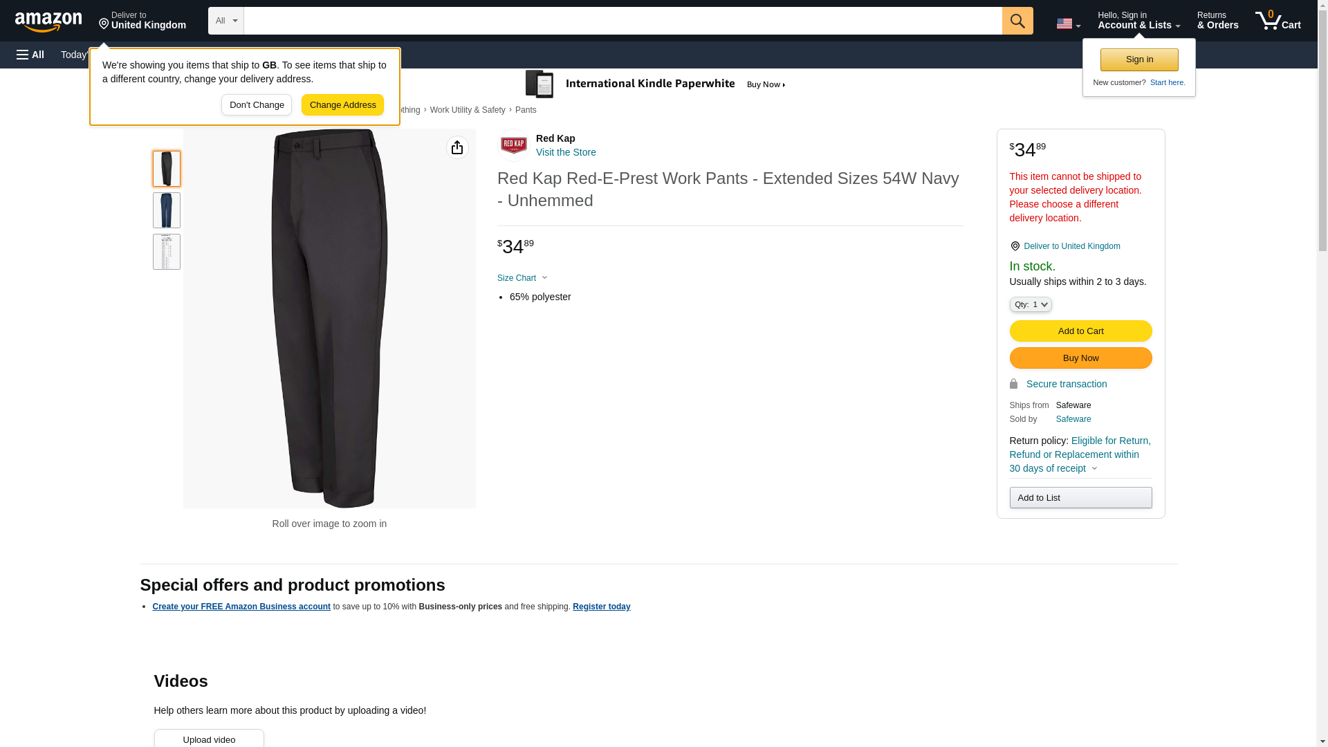 Red Kap Red-E-Prest Work Pants - Extended Sizes 54W Navy - Unhemmed