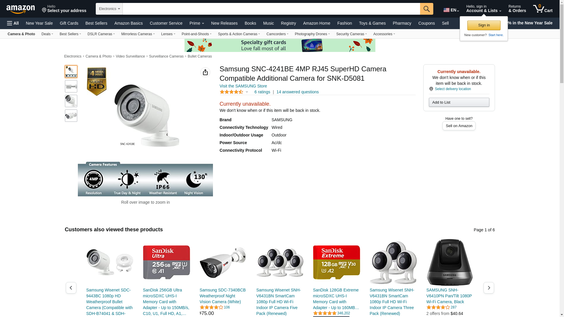 Samsung SNC-4241BE 4MP RJ45 SuperHD Camera Compatible Additional Camera for SNK-D5081