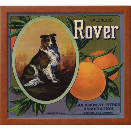 <ul> <li>Title: Rover Brand - Tustin, California - Citrus Crate Label</li> <li>Artist: Lantern Press</li> <li>Product Type: Framed Art Print</li> <li>Framed in SOHO Pecan</li> <li>Arrives ready-to-hang for fast, simple installation</li> <li>Framed Size: 22x20.5 in.</li> <li>Handcrafted in the USA</li> </ul>
