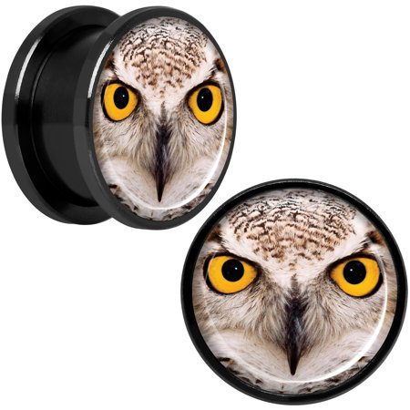 Body Candy Black Anodized Steel Full Color Owl Screw Fit Plug Set 5/8"If you love owls then this pair of double flare plugs is right for you! Made with black anodized over 316L stainless steel, these 16mm ear gauges are made with a screw fit design and are sold as a set of two for you.
