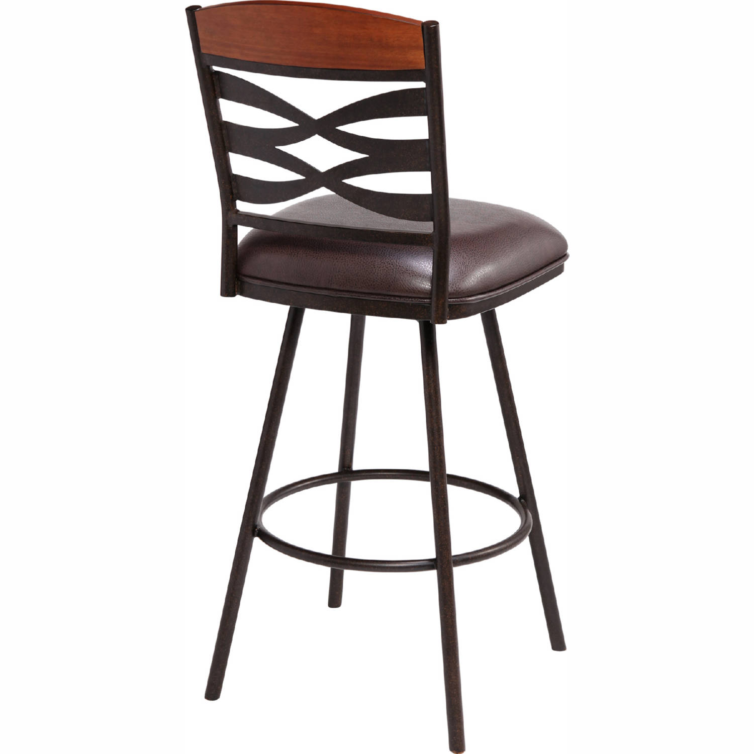 Arden Contemporary 30" Bar Height Barstool In Auburn Bay Finish With Brown Faux Leather And Sedona Wood Finish Back LCARBAABBR30 By Armen