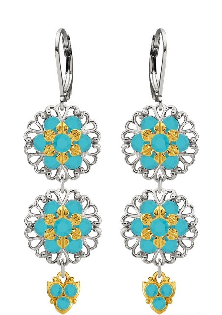 Lucia Costin Light Green Crystal, Beautiful Enriched Earrings - Sterling Silver - Plated Yellow Gold