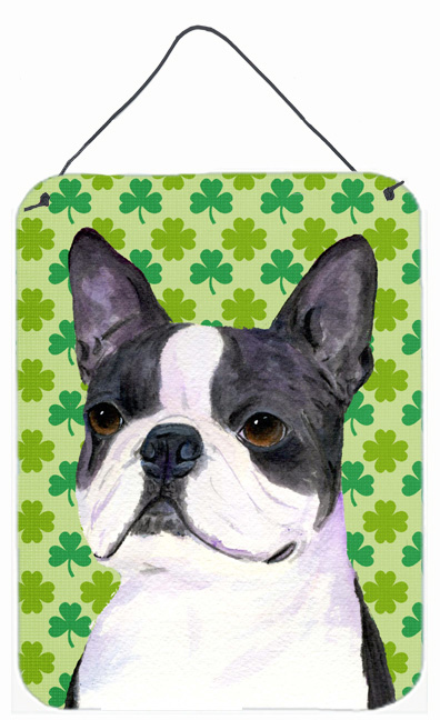 Carolines Treasures SS4447DS1216 Boston Terrier St. Patricks Day Shamrock Portrait Aluminium Metal Wall Or Door Hanging