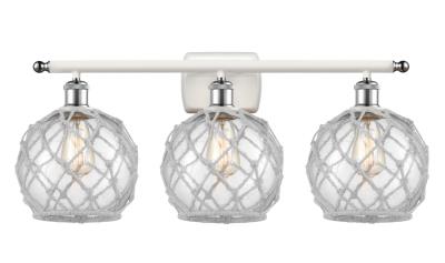 Innovations 516-3W-WPC-G122-8RW Farmhouse Rope 3 Bath Vanity Light Part of The Ballston Collection, White and Polished Chrome