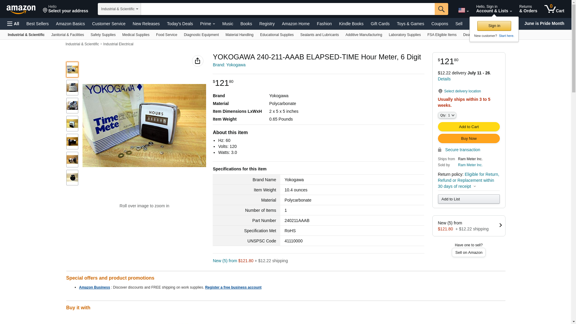 Yokogawa Elapsed-Time Hour Meter, 6 Digit - 240-211-AAAB