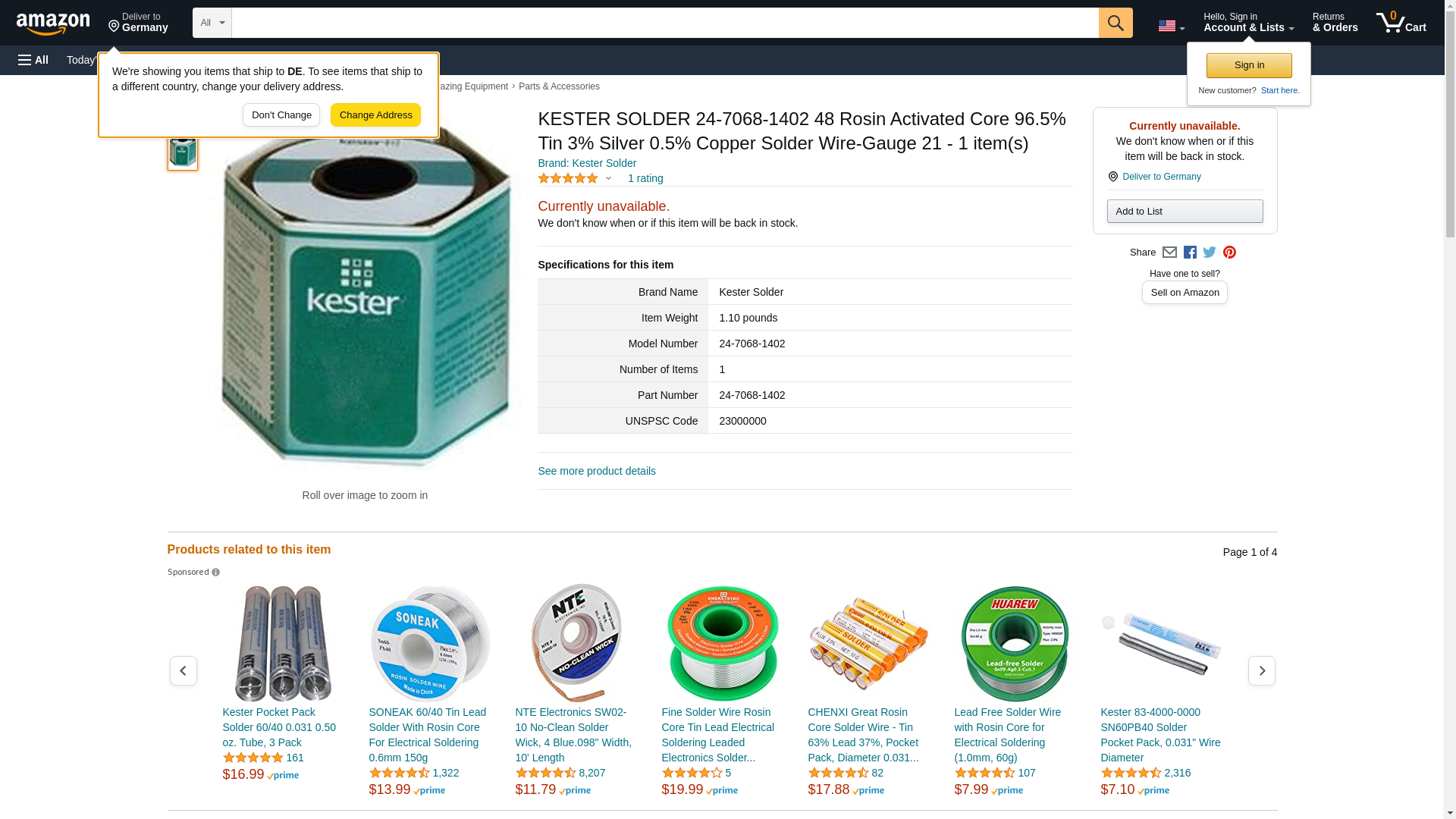 KESTER SOLDER 24-7068-1402 48 Rosin Activated Core 96.5% Tin 3% Silver 0.5% Copper Solder Wire-Gauge 21 - 1 item(s)